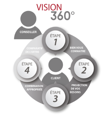 L’approche Vision 360° est une analyse rigoureuse exclusive à VIGILIS Solutions MD. Un tour d’horizon complet de vos besoins et de vos objectifs qui nous permet de trouver la meilleure solution adaptée à votre situation.