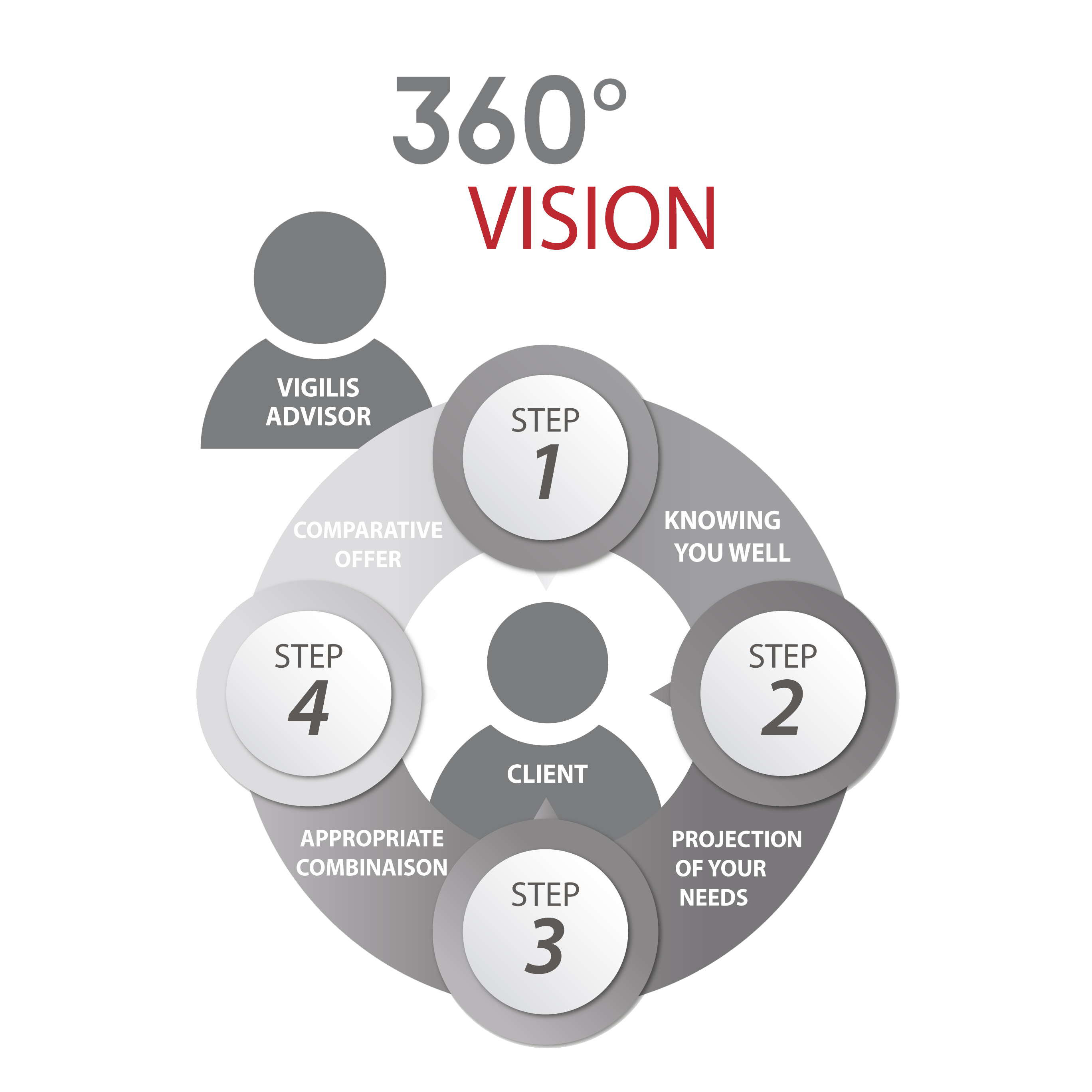 The 360° Vision Approach is a rigorous analysis that is exclusive to VIGILIS. A full overview of your needs and objectives, allowing us to find the solution that is best suited to your specific situation.
